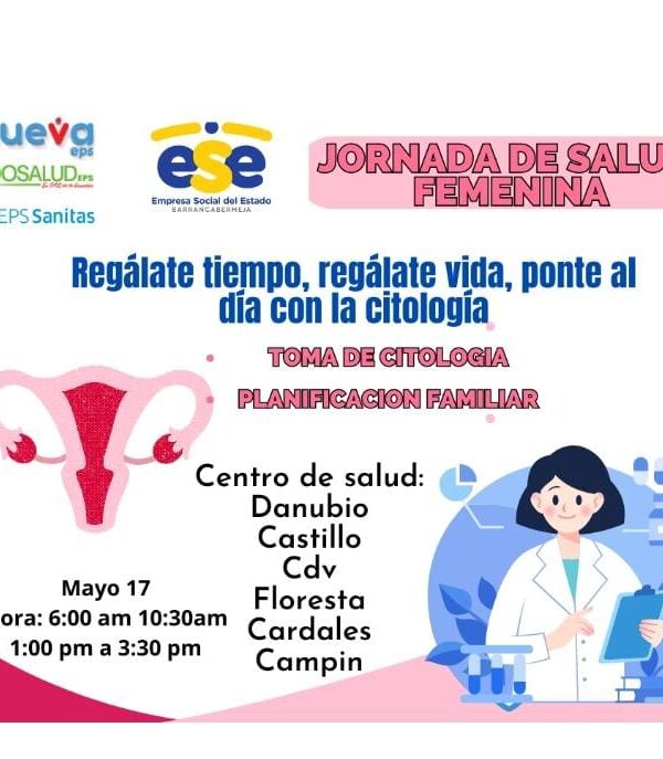 Jornada de Salud Femenina Mayo 17-2024Claudia Patricia Gómez Romero16 de mayo de 2024¿Recibes atención en los centros de salud de la ESE Barrancabermeja ? Está ... Leer más