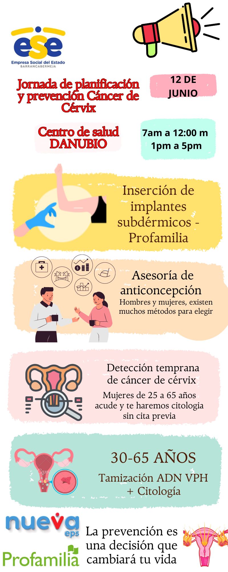 El día Miércoles 12 de Junio de 2024, estaremos en el centro de salud Danubio junto a Nueva eps y Profamilia,