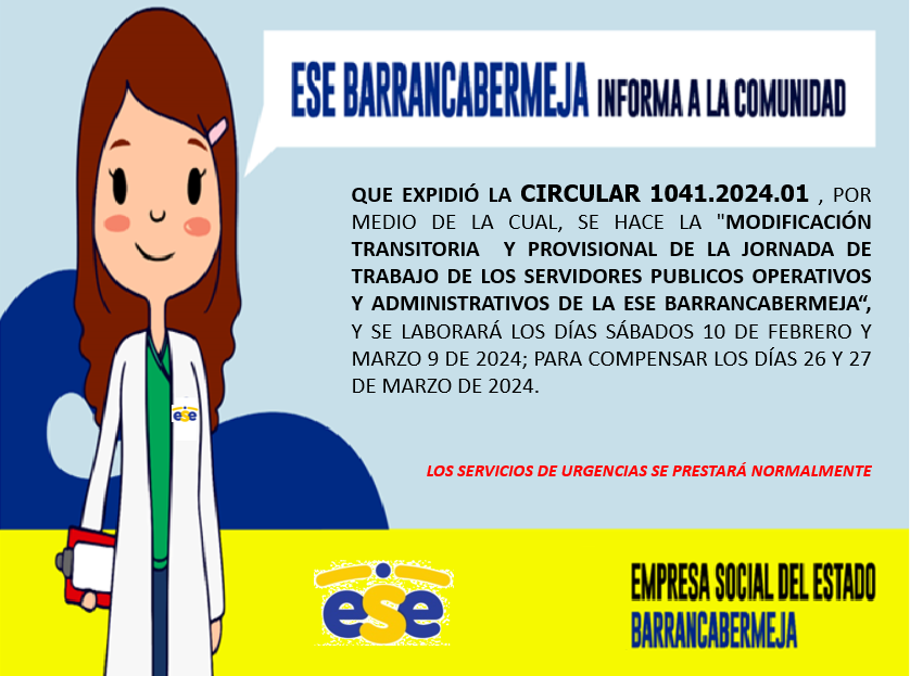 INFORMACION PARA LA COMUNIDAD SOBRE LA CUAL SE MODIFICA TRANSITORIA Y PROVISIONALMENTE EL HORARIO LABORAL DE LA E.S.E. BARRANCABERMEJA.