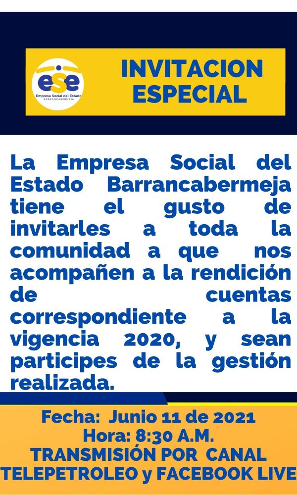 RENDICIÓN DE CUENTAS 2021E.S.E. Barrancabermeja15 de junio de 2022Te informamos fecha y hora de Audiencia Rendición de Cuentas Vigencia 2021. ... Leer más